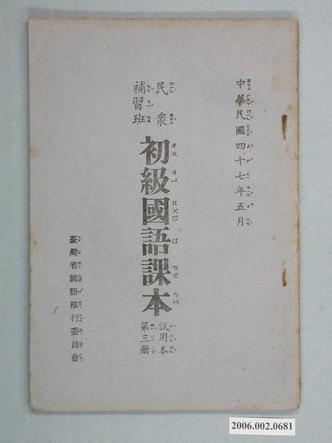 2006.002.0681 臺灣省政府教育廳發行《民眾補習班初級國語課本試用本》第三冊