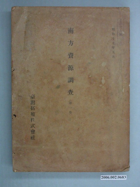 2006.002.0683 臺灣拓殖株式會社出版《南方資源調查:第一卷》