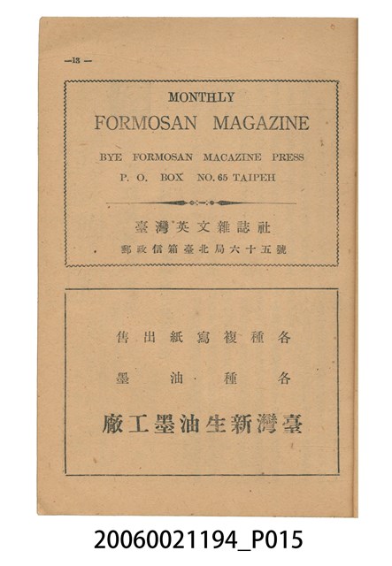 王天濱,2002。臺灣新聞傳播史,臺北,亞太圖書出版社。 陳俊斌,2007。雜誌創刊風景:雜誌中的臺灣史,全國新書資訊月刊,105,頁:23-29,國家圖書館。