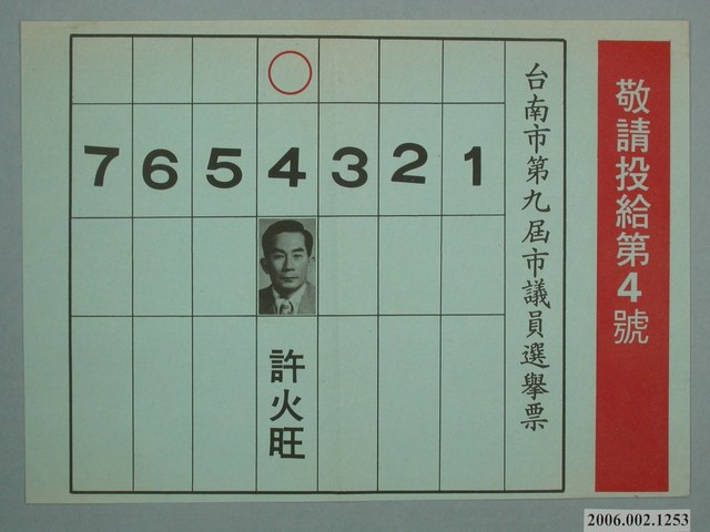 2006.002.1253 臺南市第9屆市議員候選人許火旺選舉宣傳單