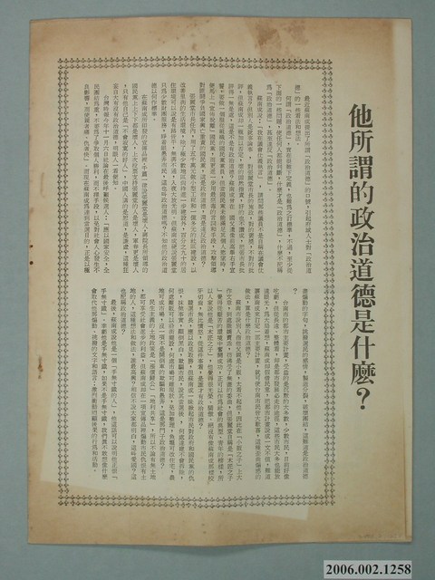 2006.002.1258 第8屆臺南市市長候選人張麗堂「為公僕張麗堂向您喊冤叫屈」選舉宣傳單
