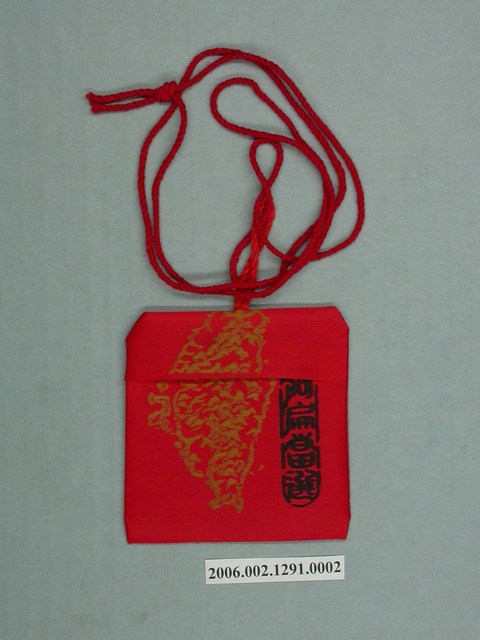 此為平安符,紅色封套印有「臺灣平安」、「阿扁當選」字樣,製作單位為南臺灣民間領袖挺扁後援會。 此物件為2004年第11屆總統選舉的相關產物,此次選舉中,由兩組人馬競爭總統,分別為中國國民黨與親民黨共同派出的連戰、宋楚瑜,以及民主進步黨派出的陳水扁、呂秀蓮,選舉結果由陳水扁、呂秀蓮以極小的差距連任成功。由於雙方得票數過於逼近,造成支持群眾的抗議與警民衝突,連戰、宋楚瑜陣營也提出重新驗票的要求,但未能改變選舉結果。(張佑宗。2006:128-133。)