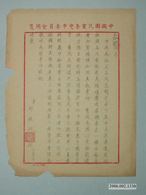 2006.002.1330 邱欽洲寄胡家銑書信