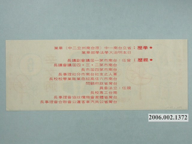 2006.002.1372 第1屆增額立法委員候選人辛文炳選舉宣傳單