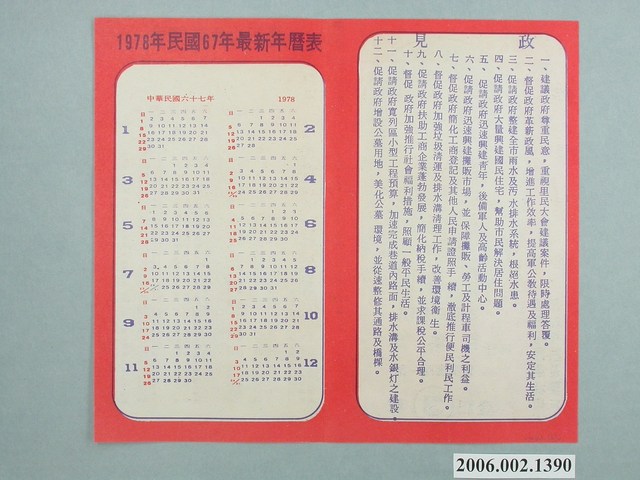 此為一選舉宣傳單,為陳瑞來第9屆臺南市市議員候選人的選舉宣傳單,此物件正面印有陳瑞來的照片,並註明市議員候選人登記的號碼為3號,且印有陳瑞來的聯絡地址與電話。背面則印有陳瑞來的學歷、經歷以及現任職位。 此物件提到的陳瑞來,曾於革命實踐研究院黨幹班、政治作戰學校戰政班學習並且結業,後擔任第8屆的臺南市市議員,並且曾就任臺灣府城隍廟建醮委員會主任委員。此件的第9屆選舉中,陳瑞來也參加選舉但並未當選。 臺灣的縣市議員選舉始於日治時代,在1935年6月臺灣總督府發佈《市會議員及街庄協議會員選舉規程》後,在該年的11月22日舉行全臺第一次地方民意代表選舉,此次選舉,選出的民意代表官選、民選各半,而選出來之議員僅具議決權,不具有提案、質詢等權責。後在國民黨政府派員接收臺灣後,1945年臺灣行政長官公署公布「臺灣省各級民意機關成立方案」,並於1946年辦理間接選舉產生縣市參議員。而在1950年,舉辦了第1屆民選的縣市議員選舉,臺灣民眾得以選出為自身權益喉舌的議員。
