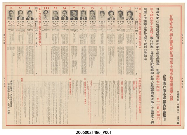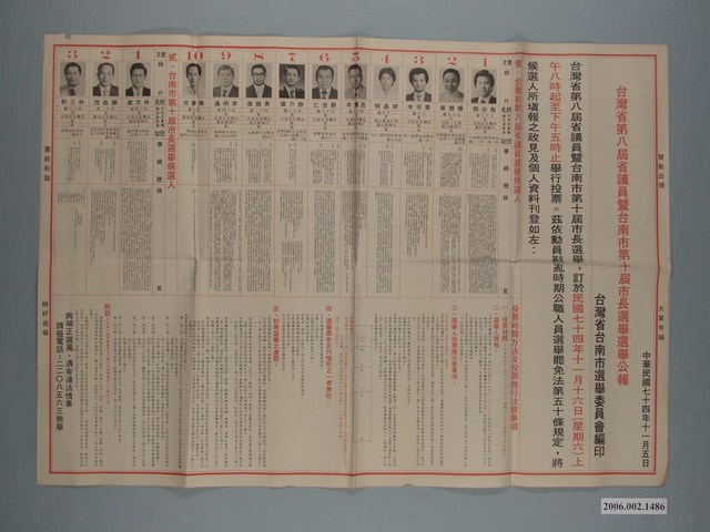 2006.002.1486 臺灣省第八屆省議員選舉候選人選舉公報
