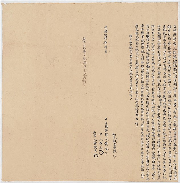 光緒14年龍溝潭保頭竹圍庒黃金立轉典契字