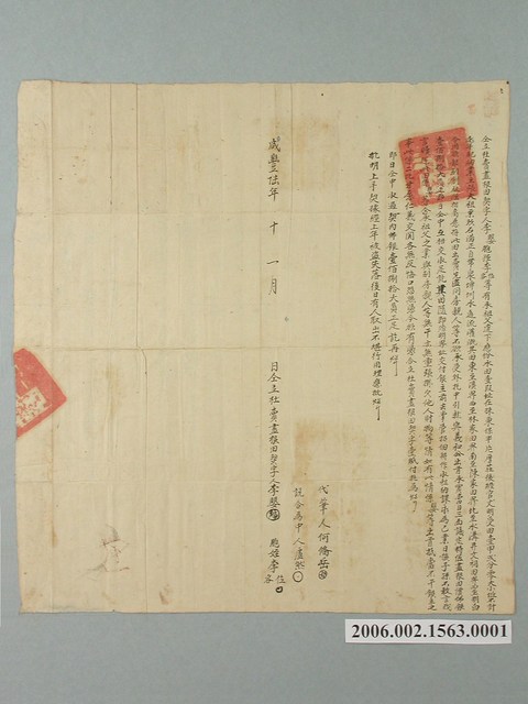 2006.002.1563.0001 咸豐6年李嬰等仝立杜賣盡根田契字