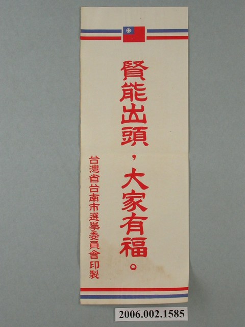 2006.002.1585 臺灣省臺南市選舉委員會印製第九屆縣市長選舉選舉標語