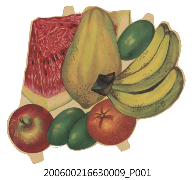 1.本物件為健康教育圖片第五類食物水果,圖中包含木瓜、芒果、西瓜、香蕉、蘋果、橘子等,編號為食8,由臺灣省政府教育廳發行,臺灣省國民學校教師研習會編印。2.戰後國民政府在臺灣設有行政長官公署教育處,1947年改制為臺灣省政府教育廳,1999年隨著時代變遷以及省政府業務以及組織的調整,省政府教育廳改制為教育部中部辦公室。臺灣省國民學校教師研習會創立於1956年,1959年改隸屬於臺灣省政府教育廳,1999年隨著教育廳改制,更名為教育部臺灣省國民教師研習會。3.臺灣的營養計畫始於1954年美援與農村復興聯合委員會的合作,隔年組織臺灣省政府教育廳營養教育委員會,並將食物營養講習放入工作計畫中。1957年教育廳會與農村復興聯合委員會(農委會之前身),選定屏東縣佳平、石門、北葉、三地及桃園縣介壽五所國民學校作爲「營養教育示範學校」,實施營養午餐制度。1964年省政府教育廳一方面編輯的兒童讀物,一方面也將營養與健康作為其推廣重點,並且依照低、中、高年級進行分類,推廣閱讀。