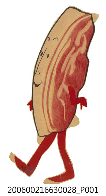 1.本物件為健康教育圖片肉,圖片為擬人化的肉,肉被畫上表情,同時也畫上其四肢,該圖編號為食31-5,應想透過圖片教材告訴學生肉富含維生素B2,由臺灣省政府教育廳發行,臺灣省國民學校教師研習會編印。2.戰後國民政府在臺灣設有行政長官公署教育處,1947年改制為臺灣省政府教育廳,1999年隨著時代變遷以及省政府業務以及組織的調整,省政府教育廳改制為教育部中部辦公室。3.臺灣的營養計畫始於1954年美援與農村復興聯合委員會的合作,隔年組織臺灣省政府教育廳營養教育委員會,並將食物營養講習放入工作計畫中。1957年教育廳會與農村復興聯合委員會(農委會之前身),選定屏東縣佳平、石門、北葉、三地及桃園縣介壽五所國民學校作爲「營養教育示範學校」,實施營養午餐制度。1964年省政府教育廳一方面編輯的兒童讀物,一方面也將營養與健康作為其推廣重點,並且依照低、中、高年級進行分類,推廣閱讀。