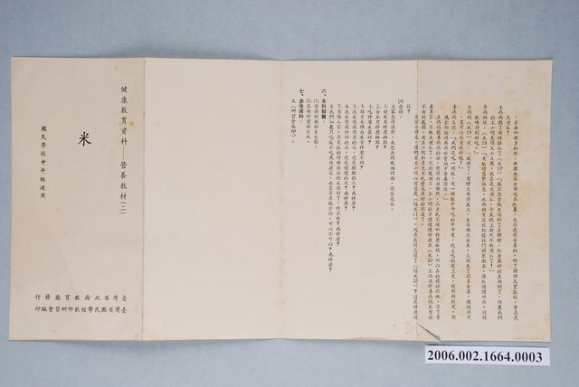 2006.002.1664.0003 健康教育營養教材中年級教學參考資料
