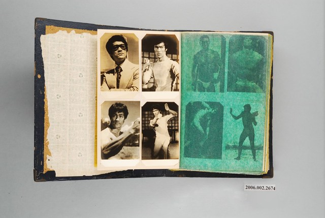 1. 私人剪貼簿,封面與底面俱為黑色硬紙質,以兩個裝訂釘裝訂,剪貼簿封面與封底外邊的兩個切角有金屬保護,現已經生鏽。剪貼簿內頁發黃老舊。第一頁有四張李小龍的明星照,包括《死亡遊戲》的劇照,第二頁有三島由紀夫僅著丁字褲的照片及另外三位無法辨識的男性照片,俱為半裸露照。2. 剪貼簿其他資料不詳。