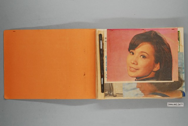 1.明星剪貼簿,封面為淡橘色紙質,為活頁夾裝訂,封面上有「光華牌紙製品」字樣,封底亦為淡橘色,首頁可見活頁裝訂夾生鏽的痕跡。首頁第一張為井莉的彩色沙龍照。2. 剪貼簿其他資訊不詳。