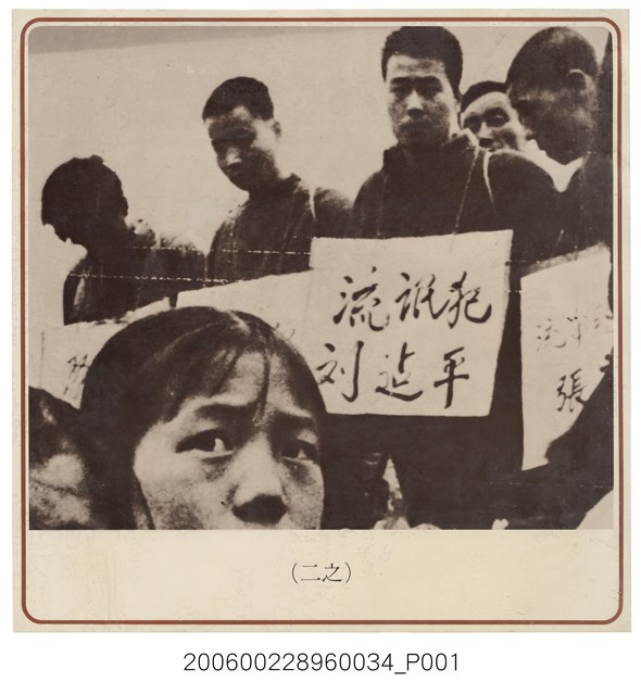 中國大陸災胞救濟總會印行《中國大陸共匪暴行》〈「流氓、流竄」犯押上囚車遊街示眾(之二)〉文宣