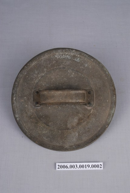 1. 本物件為農復會光復初期消除霍亂手搖DDT噴灑器蓋子。蓋子為圓盤型,蓋上有把手。