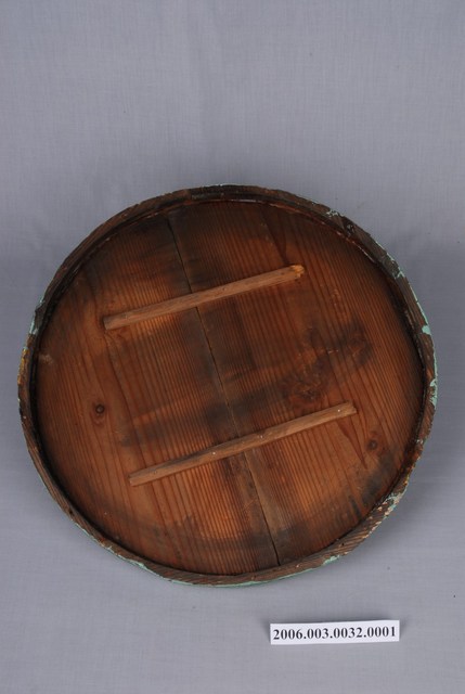 本件桶蓋為集賢號紅豆冰桶之部件1,呈長43.5公分,寬43.5公分,高10.7公分。桶蓋以木板拼接而成,呈圓形平面,周圍口緣以木板削製成圓環狀,再以鐵釘固定。頂端作牛軛型的木製提把,蓋面內側以兩條木條採橫向固定桶蓋木板。桶蓋口緣以及頂面周圍以淺白綠色油漆塗佈裝飾。