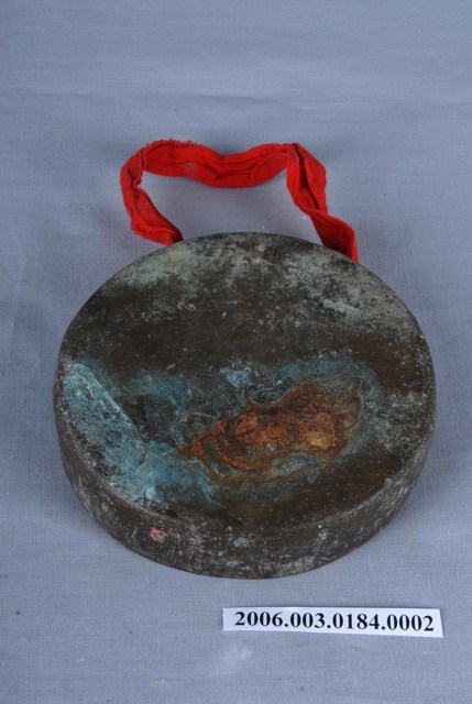 本組手鑼之鑼體為銅製,正面為平面碟形,通身布有多處銅綠鏽斑,中央偏下方處有鐵鏽鏽斑,鑼沿上方打兩個洞,以紅色布繩穿過後可供手提。鑼棒為細枝竹段製,頂端磨圓,棒身上半部三分之二處以紅色膠帶纏繞,可穩固竹段結構。