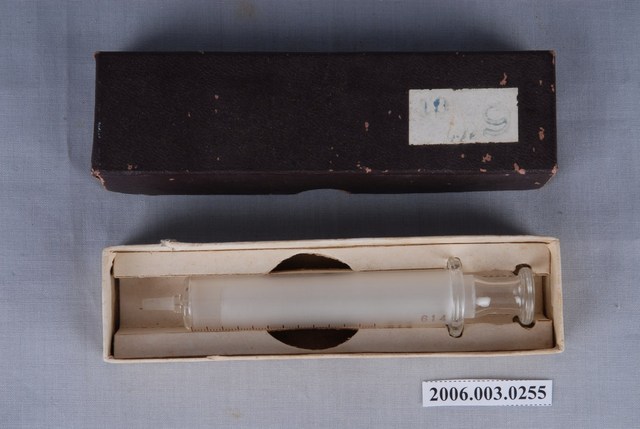 本物件為玻璃注射筒。共有2個物品,分別是注射筒與包裝盒。