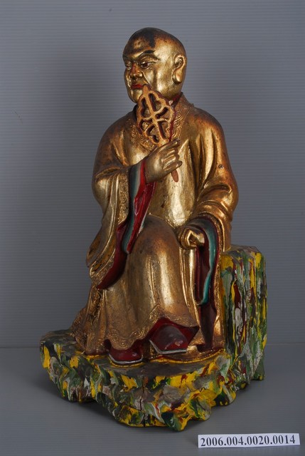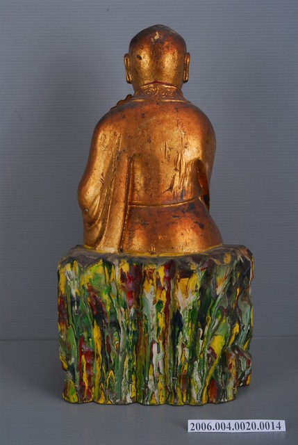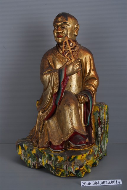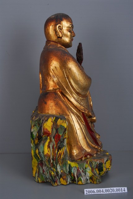 1.本物件為芭蕉羅漢,神像呈坐姿,右腳翹在左腳上右手拿著芭蕉扇,左手放在膝蓋邊。