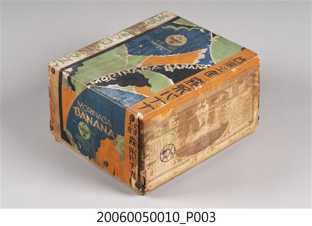 1.森永製菓株式會社製口袋盒裝香蕉牛奶糖紙盒可分為上蓋與底盒2部件,上蓋內層與底盒皆以馬糞紙板拗折成長方形盒狀,再以金屬訂書針固定,呈長23.5公分,寬26.7公分,高14.7公分。上蓋作雙層盒樣式,外層單面彩色印刷,另以圓形金屬釘固定內層。2.森永牛奶糖為森永製菓株式會社創辦人森永太一郎,於國外學習糖果製作技術後改良而成,為該企業的長銷明星商品。森永以臺灣土產香蕉農產品為特點,添加於牛奶糖中成為帶有臺灣特色的糖果。