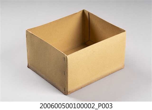 1.紙盒底盒為森永製菓株式會社製口袋盒裝香蕉牛奶糖紙盒部件之2,呈長22.9公分,寬26.2公分,高14.4公分,以紙板拗折成長方形盒狀,再以金屬訂書針固定,外觀無任何印刷呈卡其色之馬糞紙原色。2.森永牛奶糖為森永製菓株式會社創辦人森永太一郎,於國外學習糖果製作技術後改良而成,為該企業的長銷明星商品。森永以臺灣土產香蕉農產品為特點,添加於牛奶糖中成為帶有臺灣特色的糖果。