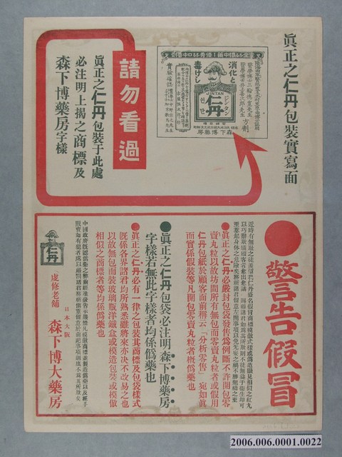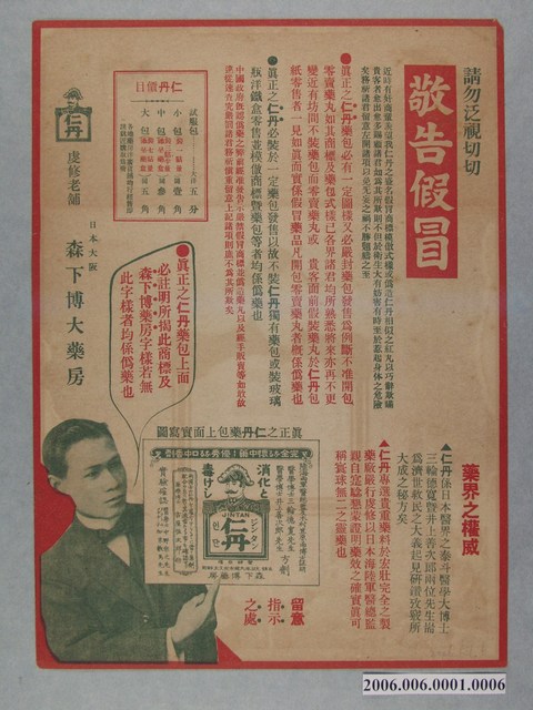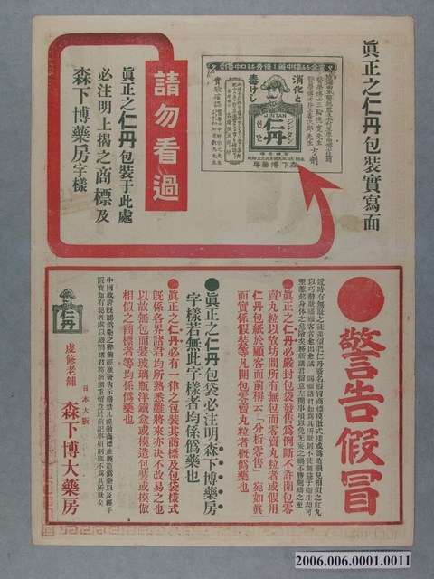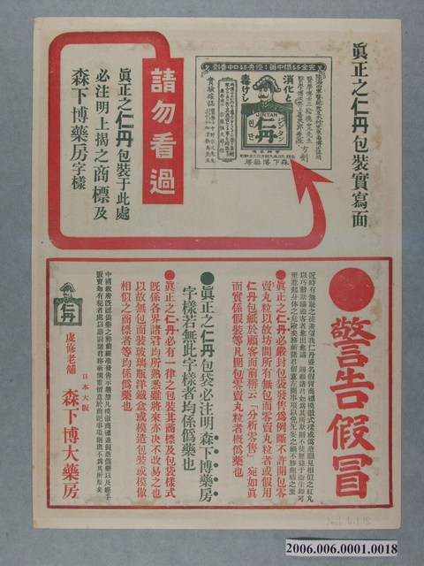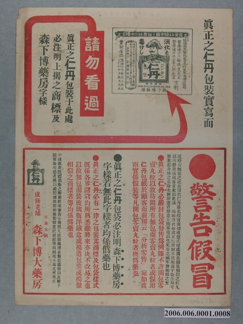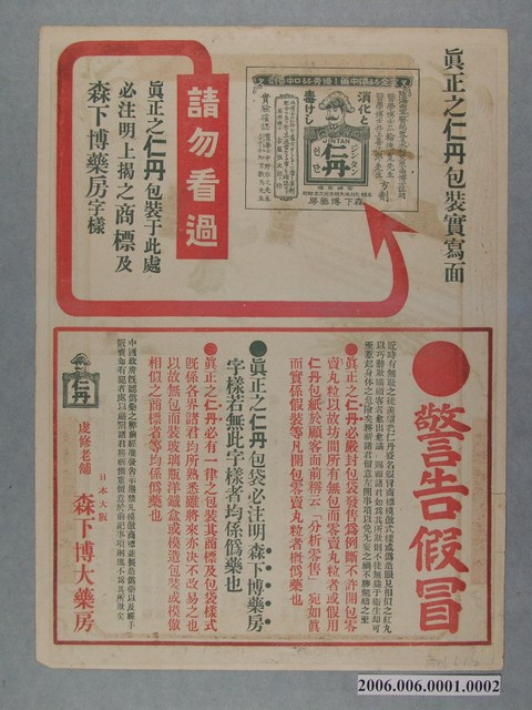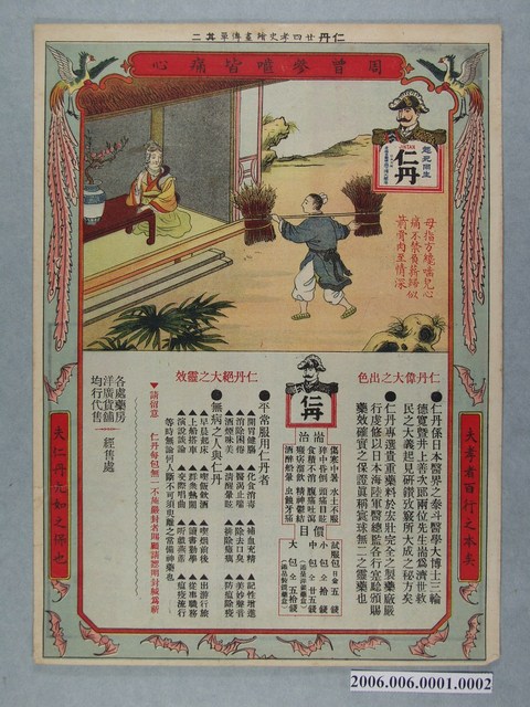 2006.006.0001.0002 仁丹廿四孝史繪畫傳單其二周曾參嚙皆痛心