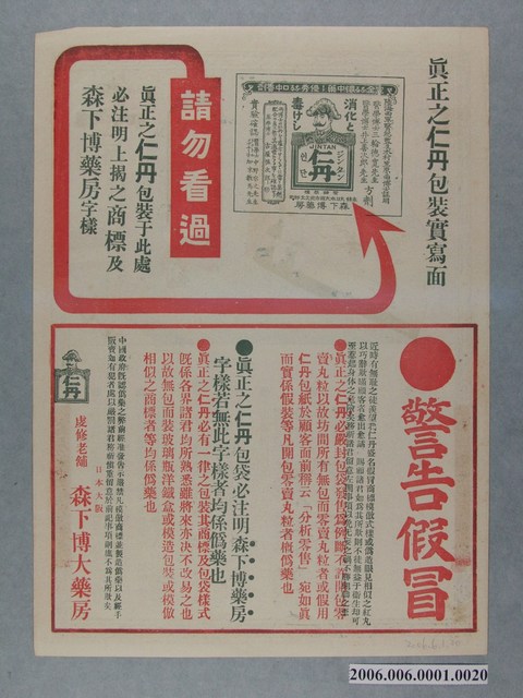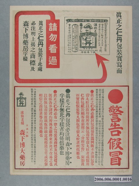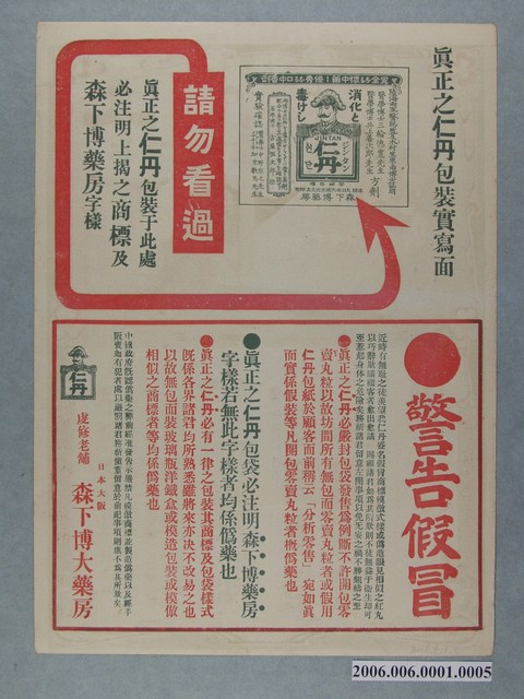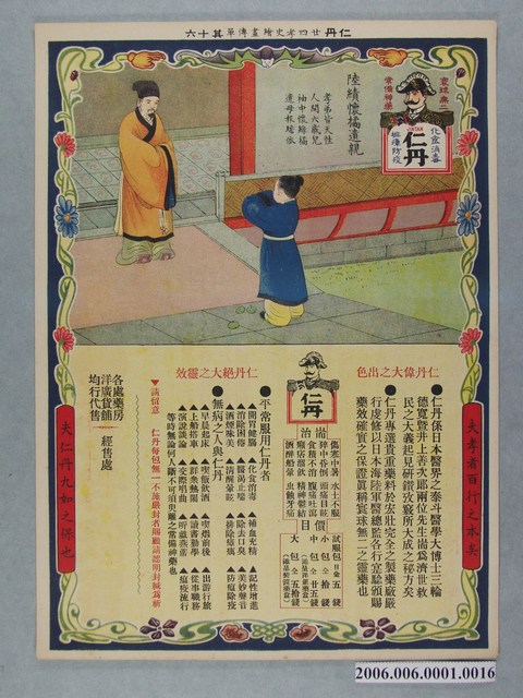 2006.006.0001.0003 仁丹廿四孝史繪畫傳單其三文帝親嚐湯藥