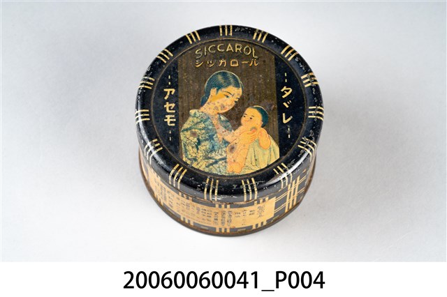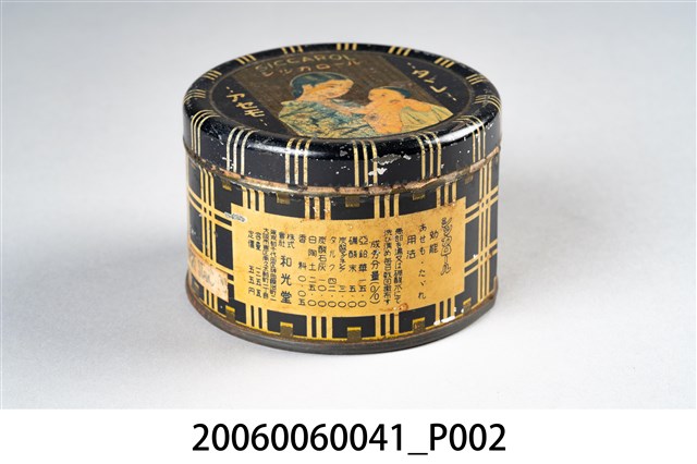 本文物和光堂爽身粉盒,整體為圓柱體,並分為盒蓋與盒身兩個部件。上蓋有一幅著和服知母親抱著嬰孩的圖畫,其上寫有「SICCAROL」、「シツカロール」應為該產品的品名,圖的右側寫有「タダレ」、「アセモ」,應為可防潰爛、汗疹之意。罐身以藍白格紋為背景,並且標示爽身粉的成分。和光堂株式會社販售處有兩地一為東京都千代田區神田鍛治町二丁目,一為大阪市東區南久太郎町一丁目,該產品容量為125瓦,定價是55元。爽身粉為滑石製作,洗澡完後使用,被認為有護理皮膚、預防痱子的功效。臺灣最早的科學配方爽身粉為1906年和光堂爽身粉,與傳統的天瓜粉(天花粉)相比,成為摩登、流行的象徵。1991年開始美國隊於滑石粉的使用作了許多研究,並質疑爽身粉的滑石成分導致女性乳癌並影響生殖器及子宮隔膜,至今爽身粉的使用對女性和嬰兒的影響仍備受爭議。