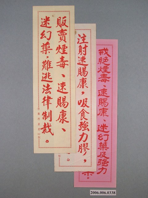 2006.006.0338.0006 臺南市政府印製反共標語《煙毒是共匪毒化世界的利刄,販賣煙毒不啻為虎作倀》