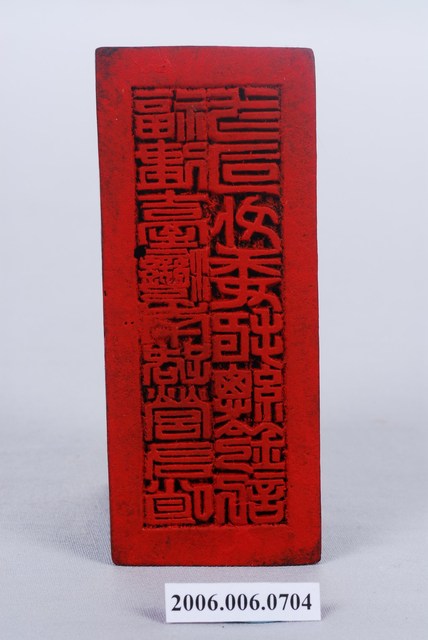 此物件為印章,內容為「福建臺灣南路營右哨二司外委把總鈴記」。 此物件為清代基層軍官用印,清廷治臺之初設立一府三縣(諸羅、臺灣、鳳山),依地理位置分別以北路、中路、南路代稱,「南路」所指為鳳山縣以南的區域。「把總」為清代陸軍基層軍官名,為「司」之下的營官。「鈴記」則是官員用印之代稱,清代的印章依照社會身份、公私用途而各有規定稱呼,分際鮮明。