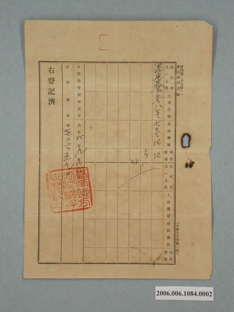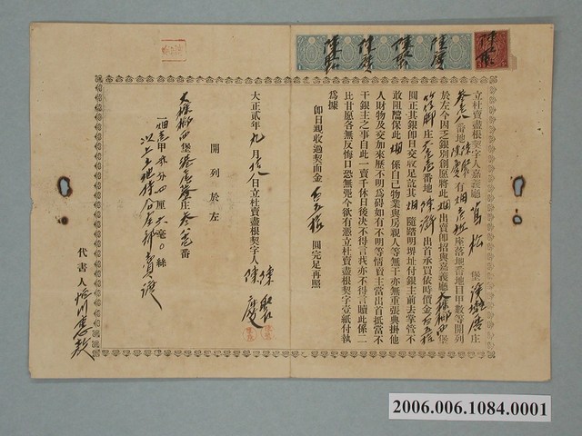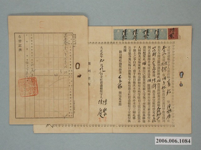 2006.006.1084 大正2年陳聚等立杜賣盡根契與登記完成證明書