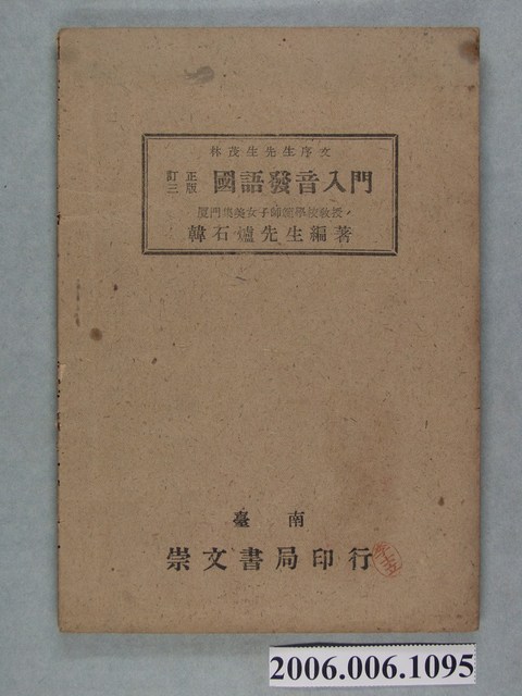2006.006.1095 韓石爐編著《國語發音入門》訂正三版