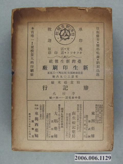 此物件為《臺灣年鑑》(1947年度),編輯單位為臺灣新生報社。《臺灣年鑑》的內容涵蓋了臺灣的地理、歷史、軍事、內政、經濟、學術等項,為甫經歷政權轉移的臺灣社會狀況進行了概括性的整理、紀錄。 此物件的出版方為臺灣新生報社,《臺灣新生報》創刊於1945年10月,是戰後初期由臺灣省行政長官公署宣傳委員會所經營的官方報刊,其前身為1944年,臺灣總督府整併島內六間報社所發行的《臺灣新報》。《臺灣新生報》最初由李萬居主導,雖屬官營報紙,但仍忠實反應民意,在二二八事件前夕,官民衝突漸深之際,新生報屢次發表告誡官方約束權力之言論。二二八事件之後,李萬居職權遭架空,辦報人員亦多被肅清,《臺灣新生報》成為單純傳遞政令訊息的官營報紙。