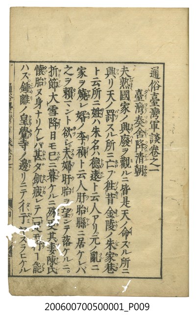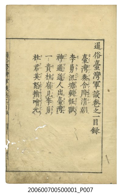 2006.007.0050.0001 《通俗臺灣軍談》卷之一