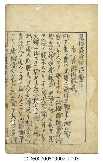 2006.007.0050.0002 《通俗臺灣軍談》卷之二