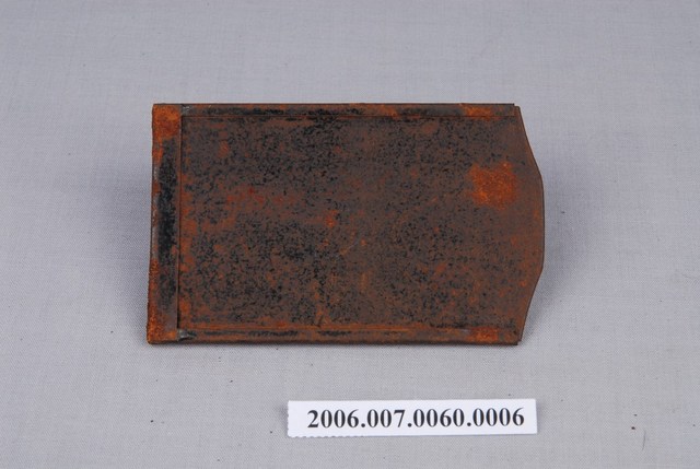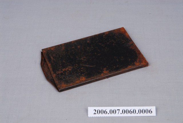 本件藏品是一個金屬片匣,是館藏編號「2006.007.0060」玻璃底片相機組中的組件之一。片匣尺寸7.9cmx4.9cmx0.4cm,可放置3吋大小玻璃底片或聚酯軟片。匣身金屬多處斑駁鏽蝕,片匣上有後來手寫上的數字「11」,由於該組件中共有11張同款片匣,標示為套組第11張片匣,以便拍照時識別避免誤用。片夾上沒有廠牌,推測是市場上的現成品。