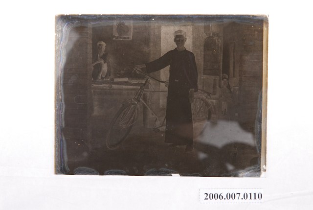 2006.007.0110 男子與腳踏車玻璃底片