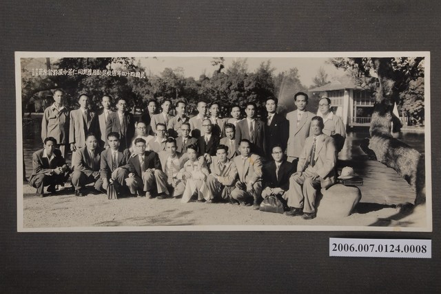 1.本物件為民國44年(1955)11月13日臺灣儲蓄合會催收獎勵月獲獎同仁紀念合影之黑白照片。照片應在戶外攝影,公司員工成兩排,第一、二排部分成員採蹲姿,第二、3排部分成員站立。照片上方列有文字「民國四十四年催收獎勵月獲獎同仁蒞中撮影留念」,載明拍照原因與日期。