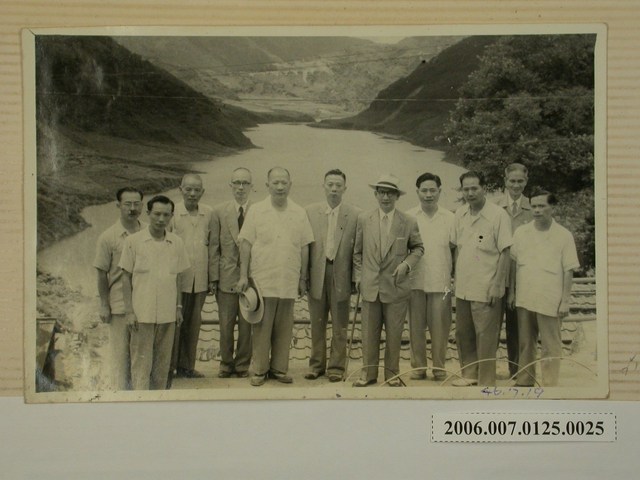 本物件為民國46年(1957)7月19日眾人合照之黑白照片。有11名男子面對鏡頭,背景為兩山中有河川,後方為山巒。11名男子除3名穿著西裝外,其餘多穿著短袖襯衫。