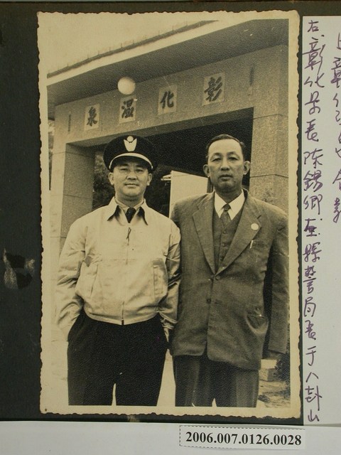 2006.007.0126.0028 《陳錫卿先生施政照片集》〈陳錫卿與彰化縣警察廳長攝於彰化溫泉前〉