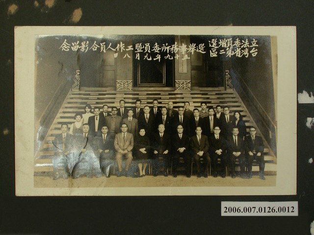此為一黑白照片,為1970年(民國59年)1月8日的「臺灣省第二區立法委員增選選舉事務所委員暨工作人員合影留念」,照片中前排右邊數來第6位即為前彰化縣長陳錫卿。背景為臺南市舊市議會,現為臺南市議政史料館。 此物件所提及的主要人物為陳錫卿,1907年出身南投竹山,在1933年開始,先後進入滿州國以及上海汪精衛政府任職。1948年在臺灣參加於臺北舉辦的「臺灣省縣長考試」,37人應試,僅有陳錫卿、何舉凡、林伏濤3人入選,3人中僅陳錫卿為臺灣人,同年4月2日陳錫卿被任命為彰化市長。在1950年彰化縣成立後,陳錫卿官派成為縣長,後在1951年辭退官派縣長投入選舉並當選第1屆民選縣長,1954年再次投入選舉並連任。陳錫卿在彰化縣長任內的重要政績為興建八卦山風景區並且修建八卦山大佛,後於1960年出任省政府民政廳廳長,並持續擔任到1966年。在1967年被指派為中國國民黨中央黨部副秘書長。