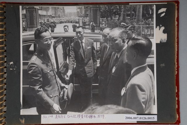 此為一黑白照片,為泰國國王蒲美蓬‧阿杜德(Phumiphon Adunyadet)於1963年來到臺灣接受接待的畫面,照片中左側帶眼鏡青年為泰王蒲美蓬,右側數來第2位為時任臺灣省民政廳廳長的陳錫卿、第3位為時任臺灣省省主席的黃杰,背景地點為臺北市的國立臺灣博物館館前廣場。 此物件所提及的主要人物為陳錫卿,1907年出身南投竹山,在1933年開始,先後進入滿州國以及上海汪精衛政府任職。1948年在臺灣參加於臺北舉辦的「臺灣省縣長考試」,37人應試,僅有陳錫卿、何舉凡、林伏濤3人入選,3人中僅陳錫卿為臺灣人,同年4月2日陳錫卿被任命為彰化市長。在1950年彰化縣成立後,陳錫卿官派成為縣長,後在1951年辭退官派縣長投入選舉並當選第1屆民選縣長,1954年再次投入選舉並連任。陳錫卿在彰化縣長任內的重要政績為興建八卦山風景區並且修建八卦山大佛,後於1960年出任省政府民政廳廳長,並持續擔任到1966年。在1967年被指派為中國國民黨中央黨部副秘書長。 此張照片的背景故事為,泰王拉瑪九世:蒲美蓬.阿杜德(His Majesty King Bhumibol Adulyadej)於1963年6月5日至8日出訪中華民國的行程中前往臺灣歷史博物館參觀的過程。此次泰王的出訪由當時的總統蔣中正接見,並在此次的出訪行程中,參訪石門水庫、國立臺灣歷史博物館、清泉崗空軍基地、龜山鄉農家等。在1971年,泰國自臺灣空運2000株溫帶果苗及蔬菜種子的進行試種,開啟雙方持續性的農業交流關係。其後,臺灣的「財團法人國際合作發展基金會」(TaiwanICDF)仍常態性地派遣農業專家駐點泰國。