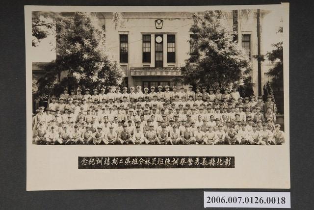 此為「彰化縣義勇警察訓練班員林分班第二期結訓紀念合照」,從前數來第三排,從右邊數來第五位即為時任彰化縣長的陳錫卿,背景為彰化縣警察局員林分局。 此物件所提及的主要人物為陳錫卿,1907年出身南投竹山,在1933年開始,先後進入滿州國以及上海汪精衛政府任職。1948年在臺灣參加於臺北舉辦的「臺灣省縣長考試」,37人應試,僅有陳錫卿、何舉凡、林伏濤3人入選,3人中僅陳錫卿為臺灣人,同年4月2日陳錫卿被任命為彰化市長。在1950年彰化縣成立後,陳錫卿官派成為縣長,後在1951年辭退官派縣長投入選舉並當選第1屆民選縣長,1954年再次投入選舉並連任。陳錫卿在彰化縣長任內的重要政績為興建八卦山風景區並且修建八卦山大佛,後於1960年出任省政府民政廳廳長,並持續擔任到1966年。在1967年被指派為中國國民黨中央黨部副秘書長。