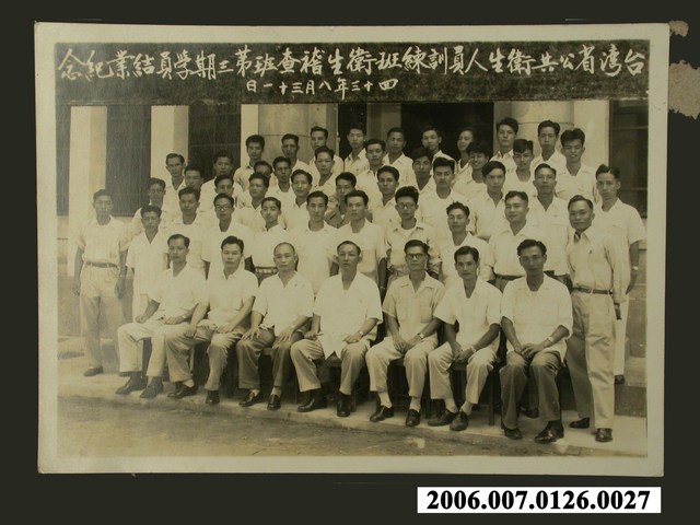 此為一黑白照片,為1954年(民國43年)8月31日的「臺灣省公共衛生人員訓練班衛生稽查班第三期學員結業紀念」,照片中前排坐者右邊數來第4位即為時任彰化縣長的陳錫卿。此件所提到的「公共衛生訓練班」最早於1936年在中國舉行,主要目的在訓練各省的衛生工作人員。 此物件所提及的主要人物為陳錫卿,1907年出身南投竹山,在1933年開始,先後進入滿州國以及上海汪精衛政府任職。1948年在臺灣參加於臺北舉辦的「臺灣省縣長考試」,37人應試,僅有陳錫卿、何舉凡、林伏濤3人入選,3人中僅陳錫卿為臺灣人,同年4月2日陳錫卿被任命為彰化市長。在1950年彰化縣成立後,陳錫卿官派成為縣長,後在1951年辭退官派縣長投入選舉並當選第1屆民選縣長,1954年再次投入選舉並連任。陳錫卿在彰化縣長任內的重要政績為興建八卦山風景區並且修建八卦山大佛,後於1960年出任省政府民政廳廳長,並持續擔任到1966年。在1967年被指派為中國國民黨中央黨部副秘書長。