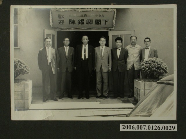 此物件為時任民政廳廳長的陳錫卿接受日本機關招待的紀念照片,其中由左數來第三位者即為陳錫卿。 此物件所提及的主要人物為陳錫卿,1907年出身南投竹山,在1933年開始,先後進入滿州國以及上海汪精衛政府任職。1948年在臺灣參加於臺北舉辦的「臺灣省縣長考試」,37人應試,僅有陳錫卿、何舉凡、林伏濤3人入選,3人中僅陳錫卿為臺灣人,同年4月2日陳錫卿被任命為彰化市長。在1950年彰化縣成立後,陳錫卿官派成為縣長,後在1951年辭退官派縣長投入選舉並當選第1屆民選縣長,1954年再次投入選舉並連任。陳錫卿在彰化縣長任內的重要政績為興建八卦山風景區並且修建八卦山大佛,後於1960年出任省政府民政廳廳長,並持續擔任到1966年。在1967年被指派為中國國民黨中央黨部副秘書長。