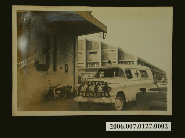 1.本物件為高雄港防空節宣傳車行經碼頭的照片,照片中宣傳車身有十字圖樣並於擋風玻璃上方寫有「AMBULANCE」字樣顯示宣傳車原用途為救護車,沿途路旁有停放幾臺汽機車,照片背景有一圓拱屋頂建築 2.抗戰期間防空總監部以我國被敵軍轟炸之損失,慘重異常,實因我國防空設備未達完善,乃請定「防空節日」,奉國民政府明令規定以每年11月21日為 「防空節」,其首屆於民國29年此日在全國各地同時舉行。
