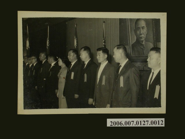 1.本物件為高雄港防空節紀念會上頒發「民防之光」紀念徽章時,等待領獎的民眾照片,照片中有10名男性1名女性,均著正式服裝,並於胸前別有長方形紙條,後方為一排中華民國國旗及國父遺像。 2.抗戰期間防空總監部以我國被敵軍轟炸之損失,慘重異常,實因我國防空設備未達完善,乃請定「防空節日」,奉國民政府明令規定以每年11月21日為 「防空節」,其首屆於民國29年此日在全國各地同時舉行。