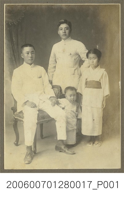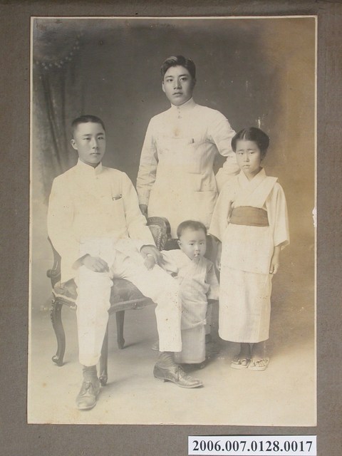 2006.007.0128.0017 兩名著西服男性及兩名穿和服孩童合照