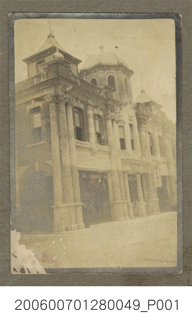 2006.007.0128.0003 坂本素魯哉董事長及臺中州知事在臺中彰銀前合影